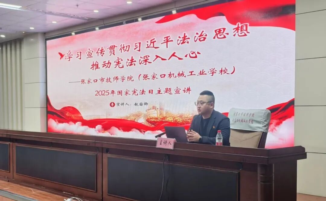 为切实增强青年学子的法治观念与规则意识,引导学生树立正确的权利义务观念与法治信仰,12月4日,在第十二个国家宪法日,学校团委特邀张家口市青年讲师团成员、我校党委办公室副主任赵国卿,为青马工程学员作《学习宣传贯彻习近平法治思想推动宪法深入人心》专题宣讲。