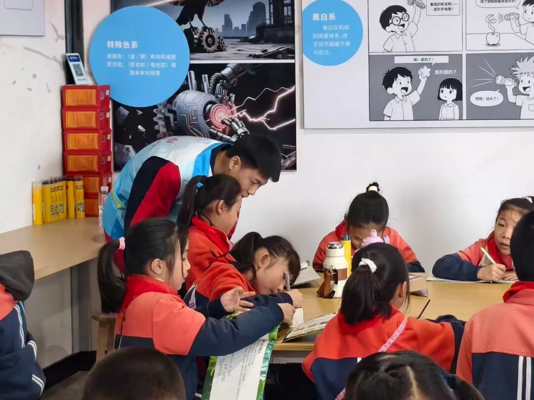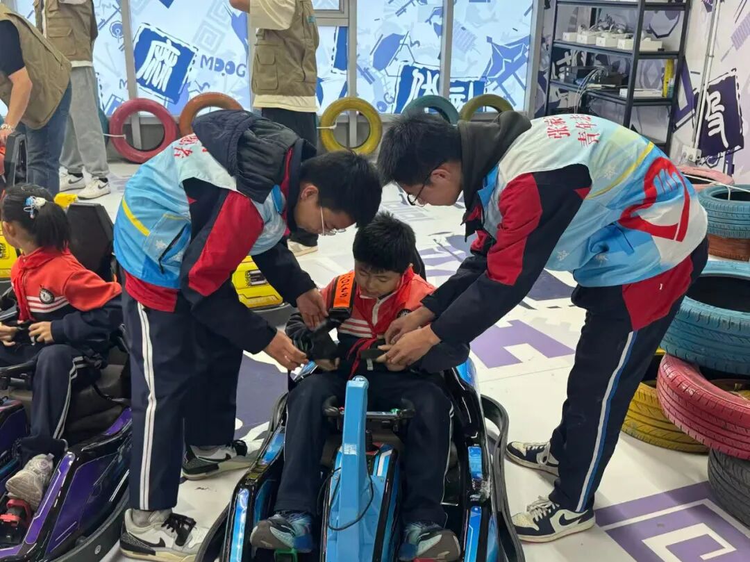 本次志愿服务统筹有序、分工明确,采取“每日10人轮岗、四组协同作战”的模式提升服务效能。志愿者们各司其职、精准发力,在展区耐心引导参观秩序、辅助孩子们探索智能展品,全程坚守安全岗位,细致做好操作提醒、护具佩戴指导等保障工作,以饱满热情和严谨态度完成每日八小时高强度服务,用实际行动诠释青年担当,成为研学现场一道靓丽的青春风景线。